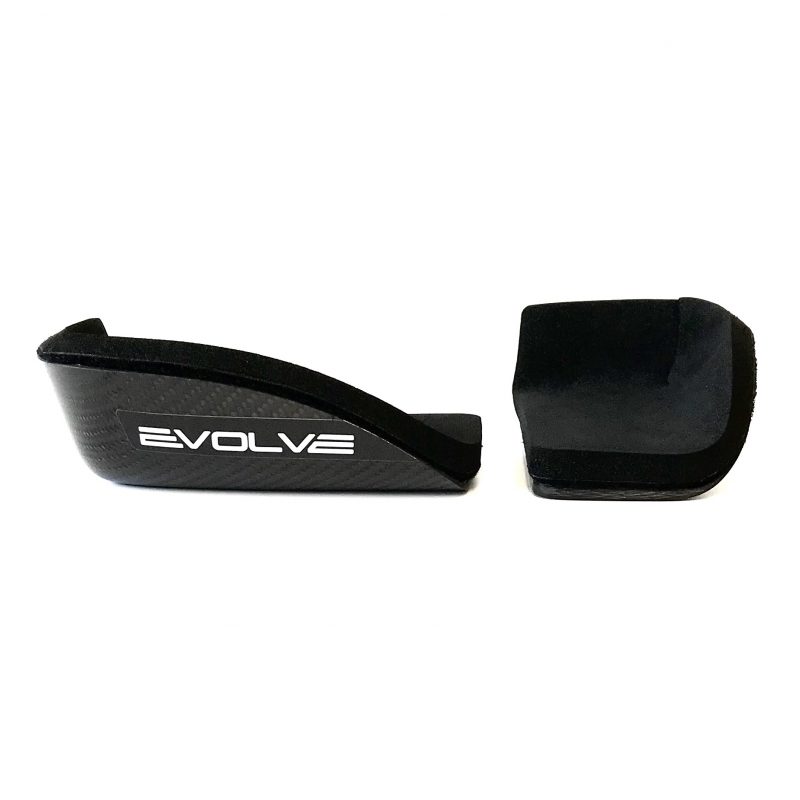 The Ergo Mantis XXX armrests are in essence an elongated version of our regular Ergo Mantis XL. This elongation results in a 30% increase in forearm support which may be helpful in achieving optimal positioning. The XXX itself also benefits from improved aerodynamic profiling from all angles. How do they work? Once a rider adopts this position it typically becomes more comfortable to move the tribar arm rests right back to the elbow joint as opposed to under the forearm, with many riders actually needing to perch the elbow in the middle of the arm rest. This usually results in excessive unwanted ‘fore aft’ movement and a degree of instability due to a smaller contact point. Ergo Mantis arm rests securely hold a rider locked into their most aerodynamic position effortlessly. This is possible through the clever ergonomic support design that wraps around the back of the elbow as well as the side. This comfortable solution allows a rider greater focus upon the race effort itself. These rests also isolate the elbow joint from fore aft movement which even at a micro level is wasting energy and therefore compromising efficient power delivery. A truly bio mechanic advantage never tapped until now. Ergo Mantis XXX are available pre-drilled or un-drilled and allow a good degree of width and fore/aft adjustment. For level set integrated cockpits either 10, 15 or 20 degree Aluminium wedges will be required to fit directly under each arm rest. The appropriate bolts are supplied for each wedge angle but if any bolts look too short for your tribar mounts please consult a bike mechanic before fitting. If your tribar arrangement calls for larger diameter M6 bolts then the pre-drilled armrest holes can be made larger by passing a 6mm drill bit through the 2x holes that are needed for your position. Un-drilled rests are easily drilled using a regular HSS drill bit. A 2mm pilot hole should be drilled prior to the final size bit usually 5mm or 6mm in diameter to accept M5 or M6 bolts. These are regularly purchased along with one of our wedges 10, 15 & 20 DEGREE SIDE BY SIDE BOLT ARM REST WEDGES or 10, 15 & 20 Degree Arm Rest Wedges